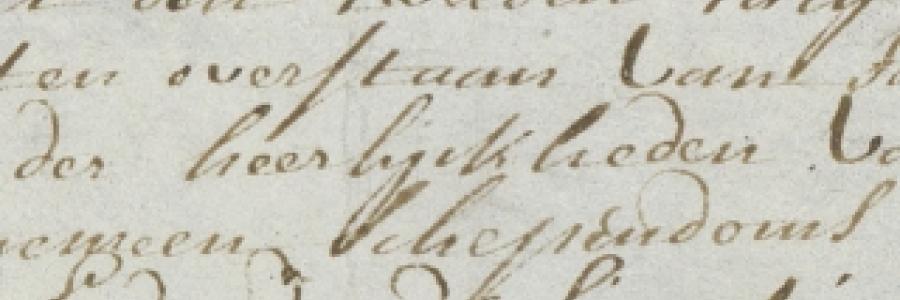 Peter de Roij, heeft wettelijck ende erffelijck ǁ vercoght opgedragen ende overgegeven aan Martinus ǁ van Onsenoort, Een gerechte vierde part gemeen ǁ en onbedeelt in een huijsinge ende aangelagh groot ǁ int geheel ses loopensaten ofte daar ontrent, soo ǁ ende geleijck het selve is gestaan ende gelegen onder ǁ dese heerlijckheijt Tilborgh ter plaatse genaamt ǁ aanden Oosten Heijcant, aldaar tussen erffenisse ǁ oost Jan Cuijsters, zuijd Francis vander Sijpen, west ǁ de straat, ende noord Jan Willems van Meijs, los ende ǁ vrij, Uijtgenomen wegen stegen ende alle andere naburelijcke rechten ǁ te onderhouden als van outs, Ende heeft daar op ten behoeve vanden ǁ cooper volcomentlijck vertegen ende gerenuntieert in manieren ǁ daar toe behoorlijck ende gewoonlijck sijnde, gelovende super se ǁ et omnia sua bona habita et habenda garandiam more solito, ǁ dit vercoopen opdragen ende overgeven altijt te sullen houden ǁ ende doen houden voor goet vast bondigh ende van waarden sonder ǁ eenigh wederseggen, En allen verholen commer, calangie ofte aan ǁ taal hier inne wesende ofte naarmaals van haren t'wegen comen ǁ de den cooper aff te doen t'eenemaal sonder argh oft list, aldus ǁ gedaan ende gepasseert den tweeden julij seventien hondert ǁ sestien, voor ende ten overstaan van Jacob Willem Fontaine ende Go ǁ vert Bles schepenen der heerlijckheden van Tilborgh ende Goirle ǁ die den zegel huns gemeen schependoms onder aan desen brieff ǁ hebben doen hangen, Ende door de signature van onsen secretaris ǁ laten onderteeckenen.