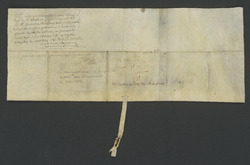 Engelbert sone Cornelis Stooters van Enckefort drossaert ende rentmeester deses vrije graeffschaps Bochoven gebruijckende de last, cracht ende macht ǁ hem gegeven bijden weledele ende hoochgeboren heere Thomas Ignatius van Immerselle grave van Bochoven voors. naer inhout van acte van ordonnantie ende procuratie ǁ van date XIen meije 1661 onder de signature ende grooten cachette vanden welgemelden heere grave luijdende aldus: Wij Thomas Ignatius van Immerselle grave ǁ van Bochoven ende des heilige roomsch rijcx, borchgraeff der stadt ende lande van Delft, vrijheer van Immerselle ende Wommelgem heere van Loon Izegem ǁ Haveluij, den Hout etcetera, doen te weten dat wij wittelijck geconstitueert ende machtich gemaeckt hebben, gelijck wij wittelijck constitueren ende machtich maecken ǁ mits desen, meester Engelbert Stooters van Enckefort drossaert ende rentmeester van onsen graeffschappe van Bochoven, gevende den selven volcomen macht, ǁ authoriteijt ende sonderlinge beveel om in onsen naeme ende van onsen t'wegen te compareeren binnen der stadt s'Hertogenbossche ofte elders daer hem dat ǁ goetduncken sal ende aldaer tot onsen behoeve te lichten ende te negotieren een somme van vier duijsent guldens capitaels etcetera ende dat op soodanighen interest t'sij ǁ tegens vier, vier ende een halff oft meerderen interest van elck hondert jaerlijcks den tijt van vier oft vijff jaren daer aff te vergelden daervoor oft van ten ǁ behoeve vande persoon oft persoonen die de voorgemelde capitaele somme van vier duijsent gulden sullen comen te furneren, voor schepenen ofte ende wethouders ǁ van onsen voors. graeffschappe van Bochoven behoirlijcke schultbrieff, oft ander bescheet te verlijden ende te passeren op verbant van onsen persoon ǁ ende alle onse erffgoederen die ons onder t'voors. graeffschap sijn toebehoirende egeene van dijen uijtgescheijden etcetera heeft alsoe wittelijck ende erffelijck ǁ geloeft ende verkocht gelijck hij geloeft ende vercoopt mits desen aen Ariaen sone Luijcas Geertsen een jaerlijcke ende erffelijcke lossrenthe ǁ van tweehondert carolus guldens t'siaers iederen gulden tot XX stuijvers gerekent, van ende uijt sijne hoochgemelde genade erffgoederen ǁ gelegen onder sijnen voors. graeffschappe van Bochoven jaerlijcks te vallene ende te betaelene vrije van alle lasten opgeseth oft opgeseth te worden ǁ den veerthiensten meije als voor ierst den XIIIIe meije XVIC tweentsestich ende soo voorts van jaere tot jaere, verthijende opde voors. rente ǁ alsoe helmelingen ende gelovende dit voors. onderpant altijt weldoogende te sullen houden voorde voldoeninge deser rente, daer onder verbindende ǁ mijns voorgemelde heere grave persoon ende goederen etcetera mits conditie dese rente altijt sal mogen ende moeten gequeten worden naer d'exspiratie ǁ van vijff jaren met een somme van vier duijsent gelijcke carolus guldens in specie van rijcxdaelders tot twee gulden X stuijvers t'stuck oft ducatons ǁ t'stuck tot drie gulden drie stuijvers mits d'afflossinge drie maenden te voren te kennen gevende, getuijgen waeren hier over Jan Adriaens ǁ Reder ende Dierck Janssen, schepenen deses graeffschaps, die d'originele acte van procuratie hier voor vermelt, onderteekent ǁ ende gecachetteert mette signature ende cachette van sijne genade mijn heer de grave van Bochoven hebben gesien ende gelesen ǁ in oirconde hebben de gemeijne schependoms segele dese onder doen aenhangen. Gegeven den XIIIIe meije anno XVIC eenentsestich. ǁ Engelbert Stooters van Enckefort secretaris ǁ 1661 ǁ