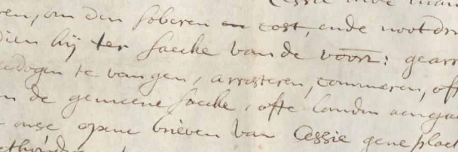 vande arreste ofte gevanckenisse indien hij ter saecke van de voorz. gearresteert ofte gevangen ware, sonder den selven ter ǁ saecke van dien meer te doen, laten ofte gedogen te vangen, arresteren, commeren, ofte beletten in sijn persoone in eeniger maniere dan ǁ alleenlijck voor penningen, ende schulden de gemeene saecke, ofte landen aangaende niet tegenstaende eenige gelofte ofte lantrechten ǁ ter contrarie, behoudelijck oock dat dese onse opene brieven van cessie gene plaetse en sullen hebben oft effect sorteren tegen bekende ǁ schulden gepasseert voor schepenen ofte wethouderen van eenige steeden ofte gepreviligeerde plaetsen, noch insgelijcks tegens sententien ǁ gegaen in crachte van gewijsde, ten ware nochtans dat den suppliant tot armoede gekomen was bij fortune sonder sijne schult ofte toedoen ǁ en of gebeurde dat den suppliant naemaels tot beter fortune van goede geraeckte te komen, hij als dan gehouden sal wesen, sijne ǁ crediteuren te contenteren, ende veranigen naer sijn macht, verstaende oock ordonnerende dat de voorz. deurwaerders ofte exploicteurs ǁ van sijne relatie hier aan te hechten, wel ende getrouwelijck relatere, des bij hem desen aengaende sal wesen gedaen, op dat sijlieden daer ǁ naer mogen weten hen te reguleren, want wij bevonden hebben 't selve alsoo te behooren, dien van de voorz. wethouderen ǁ relaterende in wedervaren, voorts ontbiedende, daertoe committerende bij desen, dat sij partijen gehoort, goet, cort, onvertogen ǁ recht doen, ende expditie van Justitie, soo ende gelijck sij in concientie, ende naergelegentheijt vande saecke bevinden sullen te ǁ behooren, Gegeven in 'sGravenhage, onder den zegel van den voorz. raede hier aen doen hangen XXV dagen inde maent ǁ october XVIc acht ende seventich.