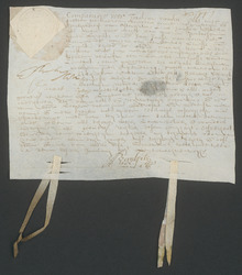 vonnis ende met recht tot sijnder eeuwige vastigheijt ende ǁ verseeckeringe mits dat hij daer van sal moeten doen ǁ ende geven alle schoten lothen contributien ende voorders ǁ onderhouden alle gebuerelijcke rechten deser vrijheijt, Oosterhout,ǁ Toirconden der waerheijt soo hebben wij schepenen voornoemt ǁ hier onder aen doen hangen onse schepenen segelen ende dese ǁ